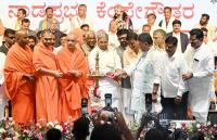 | Event Details: | Sri Nirmalananda Swamiji, Sri Nischalananda Swamiji, Nanjavadoota Swamiji, Chief Minister Siddaramaiah, DCM DK Shivakumar, Ministers and others during the Nadaprabhu Kempegowda 516th birth anniversary and Kempegowda International Award presentation program at Babu Jagjivan Ram Bhavan, in Bengaluru on Friday 27th June 2025 |