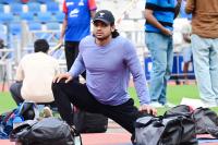 Indian Olympic medal winner and javelin thrower Neeraj Chopra during his practice session ahead of Neeraj Chopra Classic 2025 at Kanteerava Stadium, in Bengaluru on Thursday 3rd July 2025