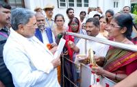 Chief Minister of Karnataka Siddaramaiah receiving public grievances and petitions at his official residence, in Bengaluru on Wednesday 23rd July 2025