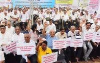 Members of CBPRO (Coordination of Bank Pensioner Retirees Organisations) staging a protest and demanding review of Ex-Gratia for 2024-2025, in Bengaluru on Saturday 2nd August 2025