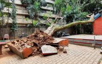 A huge tree uprooted at Press Club Premises, in Bengaluru on Saturday 9th August 2025