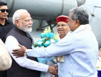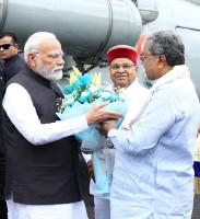 Prime Minister Minister Narendra Modi being welcomed by Governor of Karnataka Thawar Chand Gehlot and Chief Minister of Karnataka Siddaramaiah, in Bengaluru on Sunday 10th August 2025