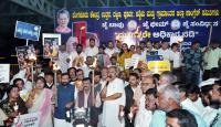 Members of KPCC and the Bangalore City District Congress Committees participated in the candlelight march to against alleged vote rigging in the Lok Sabha elections at Freedom Park, in Bengaluru on Thursday 14th August 2025