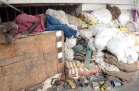 A man taking a nap amidst garbage at KR Market, in Bengaluru on Sunday 24th August 2025