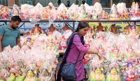 People shopping for Gowri Ganesha idols at RV Road for the Ganesh Chaturthi Festival, in Bengaluru on Tuesday 26th August 2025