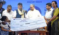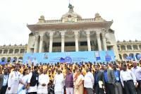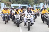 DCM DK Shivakumar riding a bike from Kanteerava Stadium to Vidhana Soudha during the bike rally as part of "International Democracy Day", in Bengaluru on Monday 15th September 2025