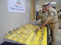 Police Commissioner Seemanth Kumar Singh inspects the seized items during the Property parade press meet at Police Commissioner office, in Bengaluru on Tuesday 16th September 2025