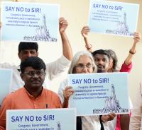 Members from Coalition of Civil society organizations during the round table Meeting on resist special intensive revision of Electoral rolls in Karnataka at Legislators Hall, in Bengaluru on Friday 10th October 2025