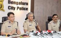 Police Commissioner Seemanth Kumar Singh inspects the seized items during the Property parade press meet at Police Commissioner Office, in Bengaluru on Tuesday 14th October 2025 2025