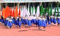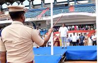 Minister Madhu Bangarappa saluting during the rehearsal for the Kannada Rajyotsava celebrations at Kanteerava Stadium, in Bengaluru on Thursday 30th October 2025