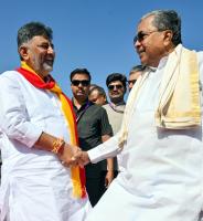 Chief Minister of Karnataka Siddaramaiah with DCM D K Shivakumar and others during the "Kannada Rajyotsava" celebrations at Vidhana Soudha, in Bengaluru on Saturday 1st November 2025