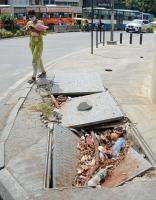 Poor condition of footpaths at Lavelle Road, causing inconvenience to people, in Bengaluru on Monday 3rd November 2025