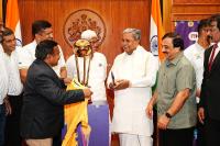 CM Siddaramaiah unveiling the Trophy of Hockey Men Junior World Cup, in Bengaluru on Tuesday 25th November 2025