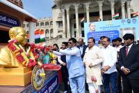 Minister HC Mahadevappa and others offering floral tribute to Dr. BR Ambedkar statue at Vidhana Soudha on the occasion of Constitution Day Celebrations, in Bengaluru on Wednesday 26th November 2025
