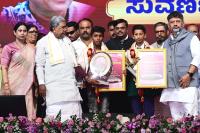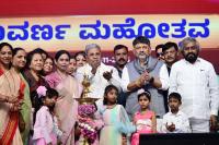 | Event Details: | Chief Minister of Karnataka Siddaramaiah with DCM DK Shivakumar, Ministers Ishwar Khandre, H.C. Mahadevappa, Lakshmi Hebbalkar, K.H. Muniyappa and others during the Golden jubilee celebration of the Establishment of Integrated Child Development Services and Anganwadi Centers at Palace Grounds, in Bengaluru on Friday 28th November 2025 |