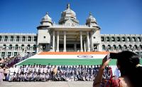 School Children from various School from the Belagavi district visit to Suvarna Soudha and taking photos in front of the Tri Color flag and enjoy the water fountain, in Belagavi on Wednesday 17th December 2025