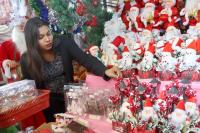 People shop for decorative items for the Christmas Day festival celebrations at Shivaji Nagar, in Bengaluru on Sunday 21st December 2025