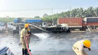 | Event Details: | Firemen douse off the charred and mangled remains of the private sleeper bus which was involved in an accident on NH 48, which has claimed 5 lives so far, in Chitradurga on Thursday 25th December 2025 |