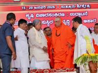Sri Shivaratri Desikendra Swamiji of Sutur Mutt seen with CM Siddaramaiah and Minister HC Mahadevappa during the Suttur Jatra Celebrations at Suttur Mutt, in Mysuru on Sunday 18th January 2026