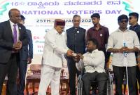 | Event Details: | Governor Thaawar Chand Gehlot presenting Voter ID cards to the Physical challenged person, transgender, first time voters during the inauguration of National Voters Day 2025 program at Town Hall, also seen are Chief Electoral Office, Karnataka, V Anbukumar, IAS, Greater Bengaluru Authority, Chief Commissioner, Maheshwar Rao and others, in Bengaluru on Sunday 25th January 2026 |