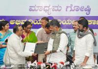 DCM DK Shivakumar distributed the E Khata to those who converted their B Khata to E Khata at Vidhana Soudha during the press conference, in Bengaluru on Monday 9th February 2026