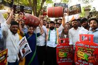 Members of KPCC Youth Congress led by President Manjunath protesting against Union Government for hike in price for LPG Cylinder, in Bengaluru on Tuesday 10th March 2026