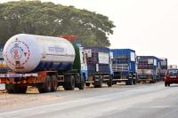 Cylinders supply vehicles parked at the Gas Filling station in Solur, in Bengaluru on Sunday 15th March 2026