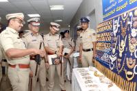 Police Commissioner Seemanth Kumar Singh inspecting seized items during the press on Property Parade at Police Commissioner office, in Bengaluru on Wednesday 18th March 2026