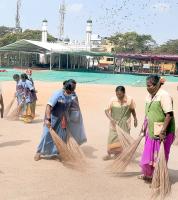 Poura Karmika workers cleaning Chamrajpet Eidgah Maidan on the eve of Eid Ul Fitr and the end of the Ramadan month, in Bengaluru on Friday 20th March 2026